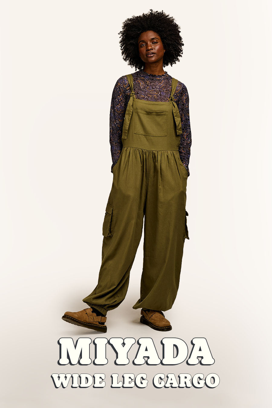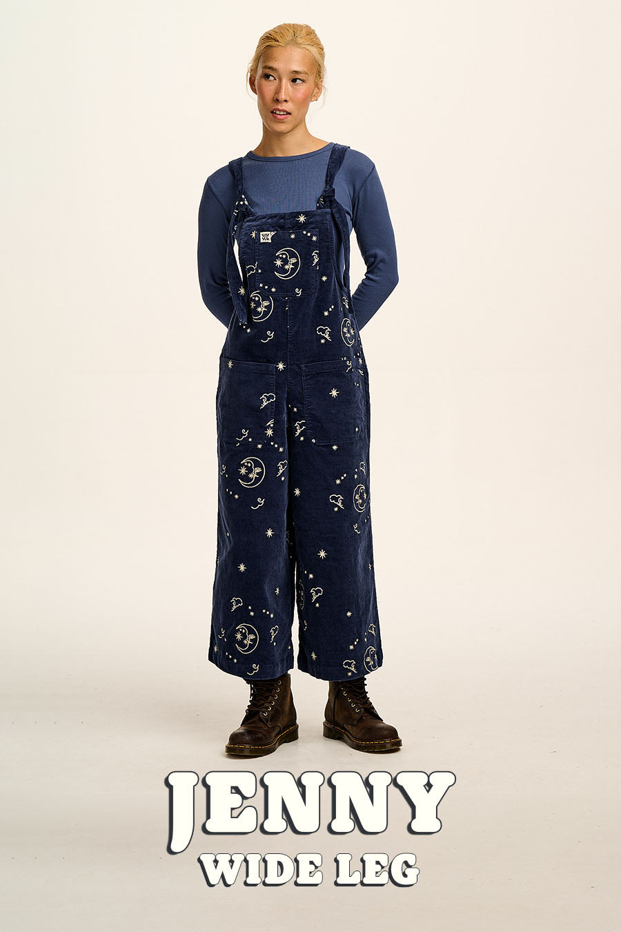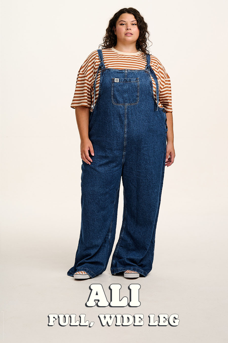 Ali - Wide Leg Denim Dungarees in Mid Wash Blue