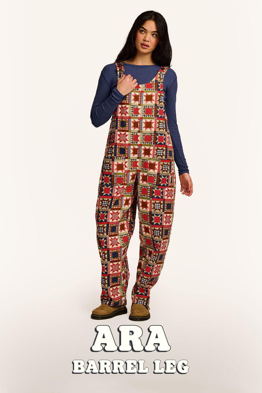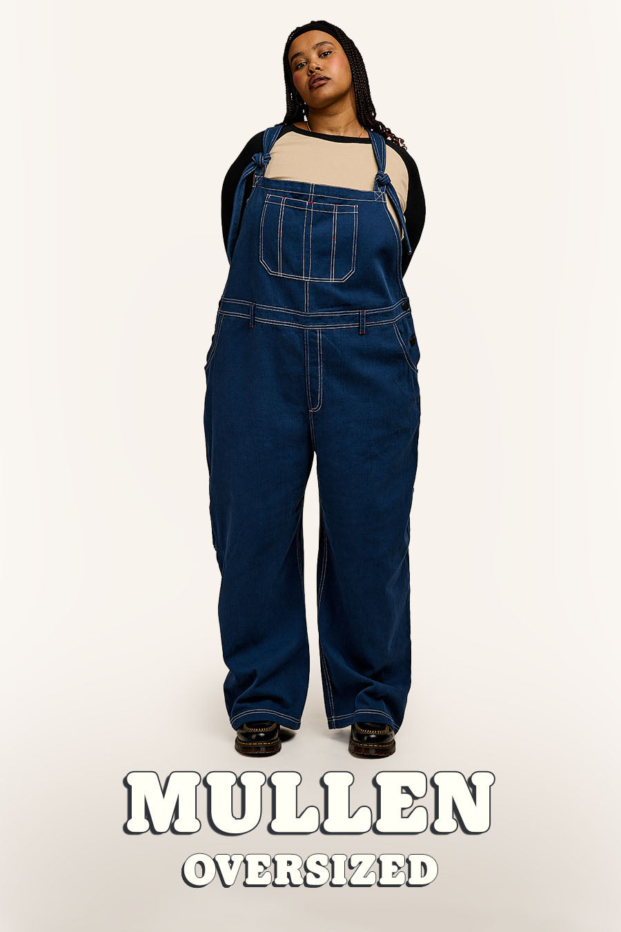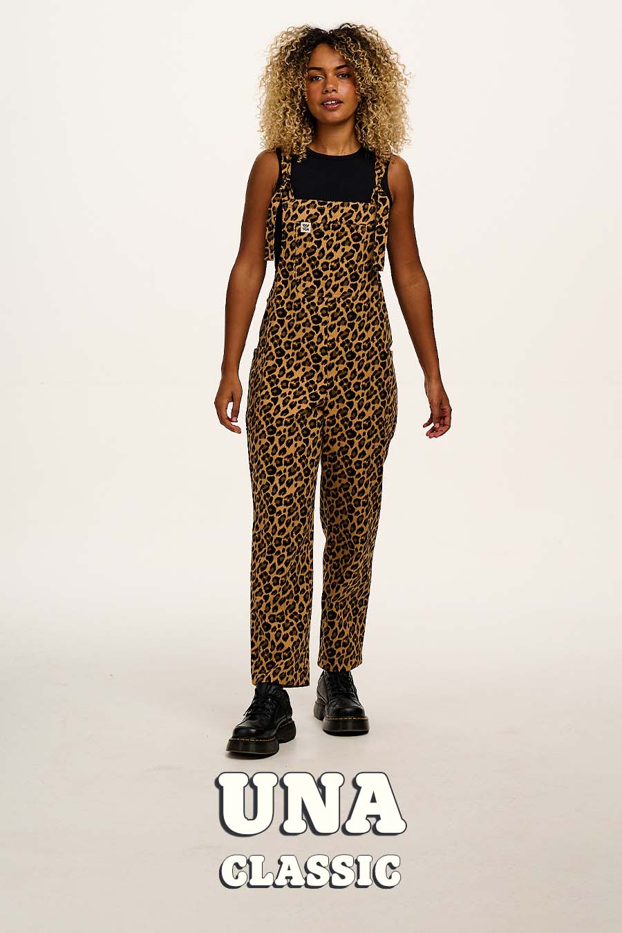 Ali - Wide Leg Denim Dungarees in Mid Wash Blue
