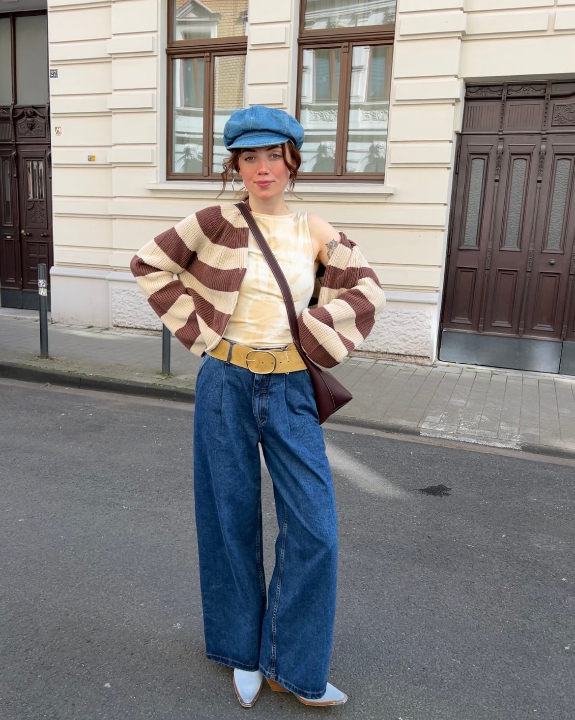 Cole - Wide Leg Denim Jeans in Mid Wash Blue