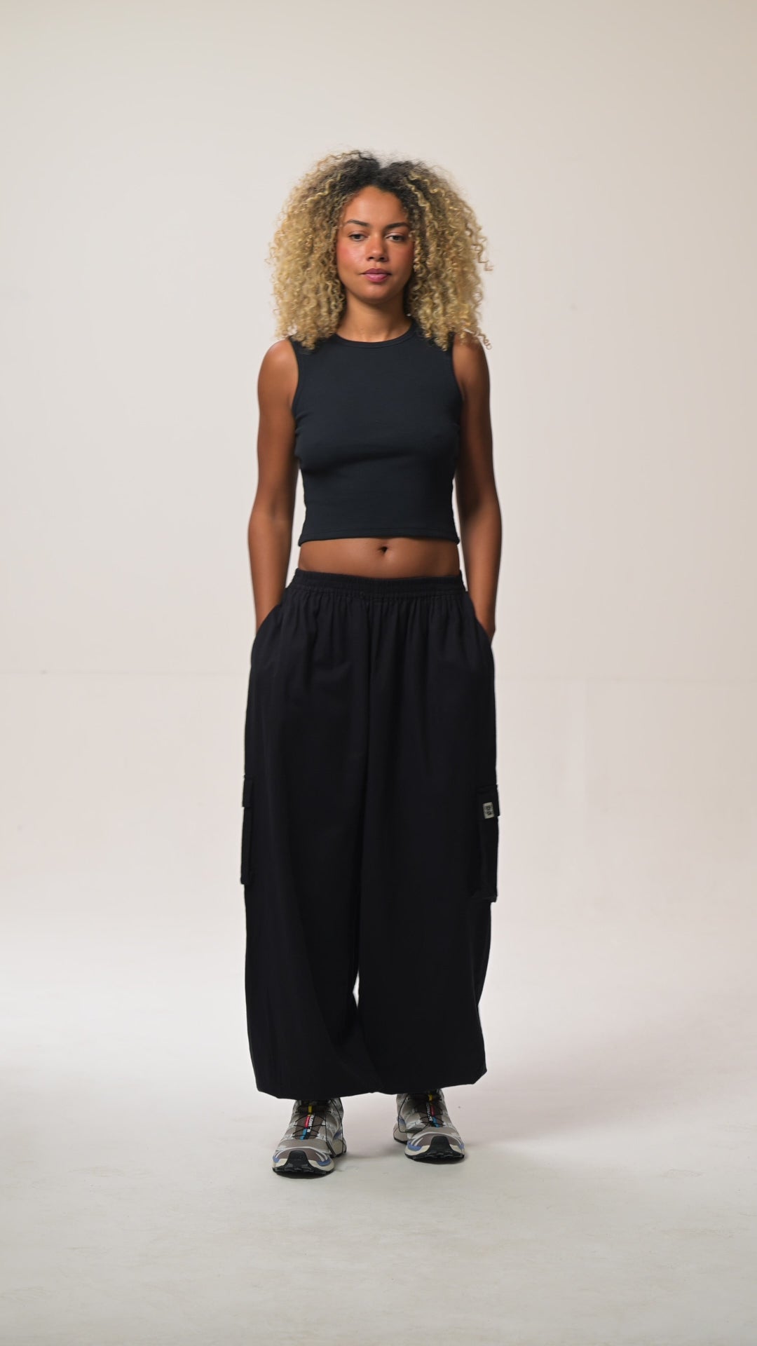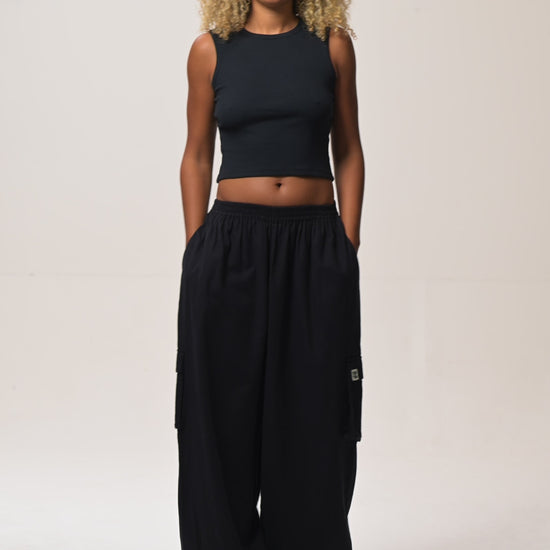 Rumi - Brushed Cotton Barrel Trousers in Black