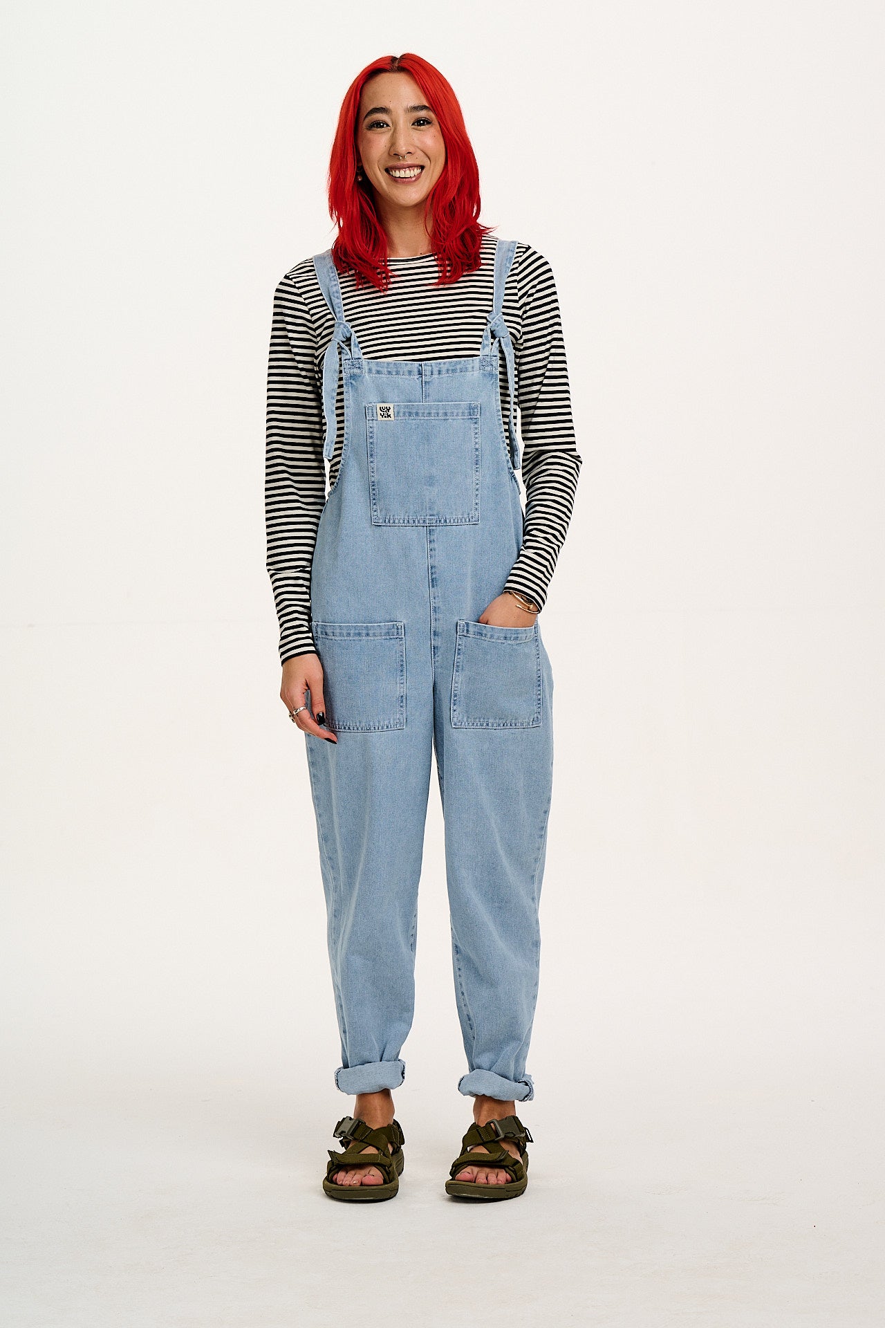 Rey - Long Sleeve Cotton Top in Black & White Stripe