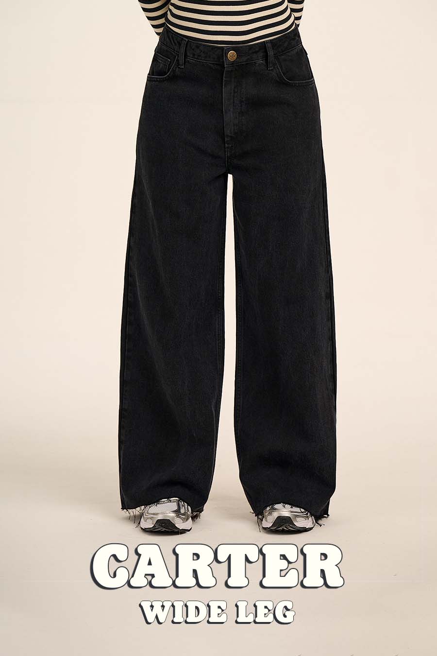 Carter - High Waisted Denim Jeans in Washed Black