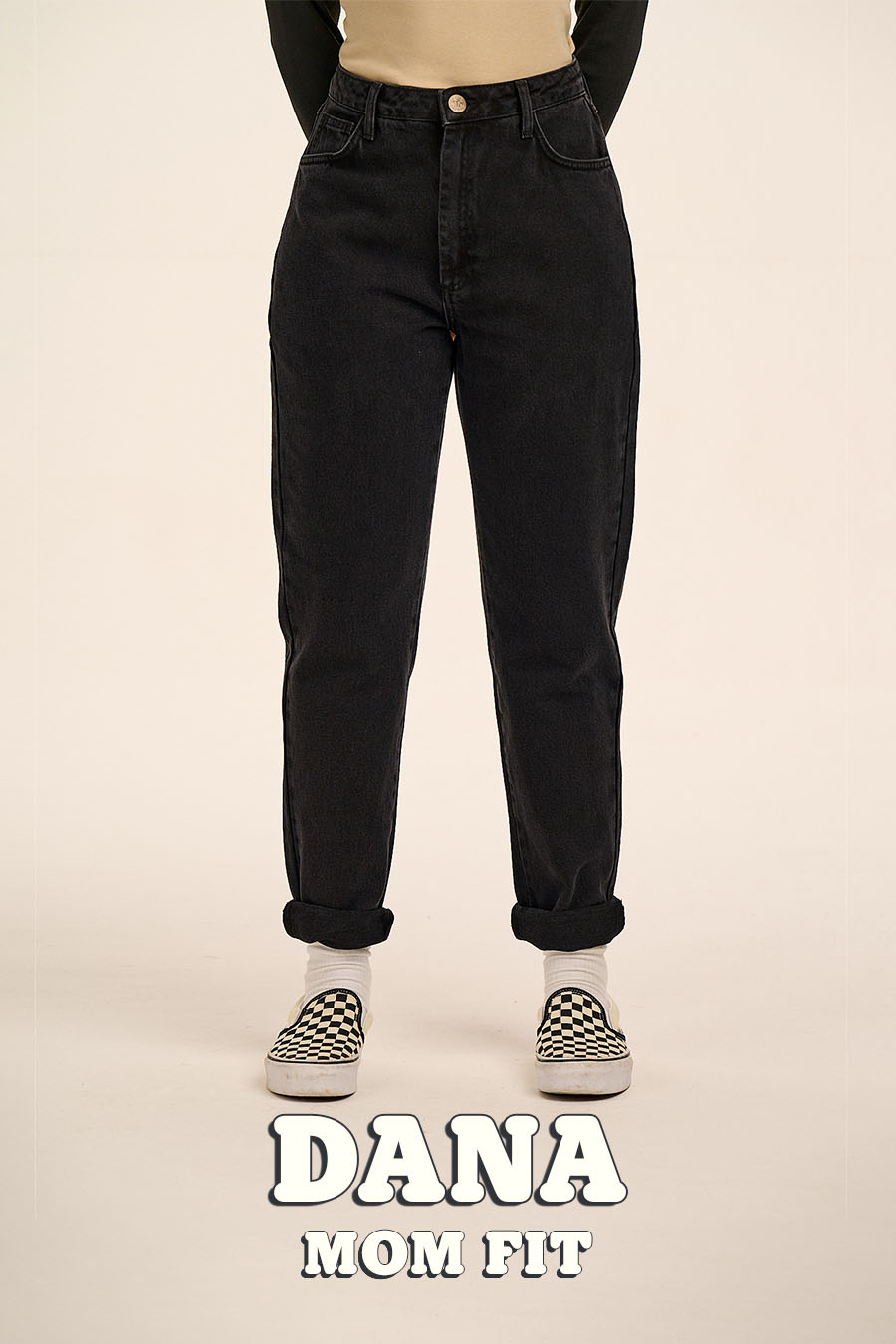 Dana - Mom Denim Jeans in Washed Black
