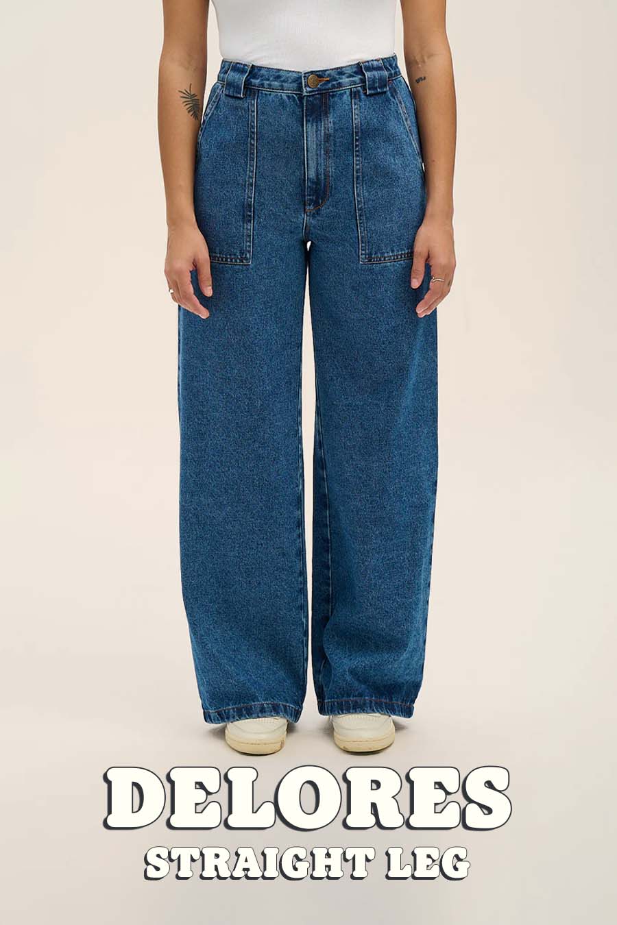 Delores - Wide Leg Denim Jeans in Mid Wash Blue