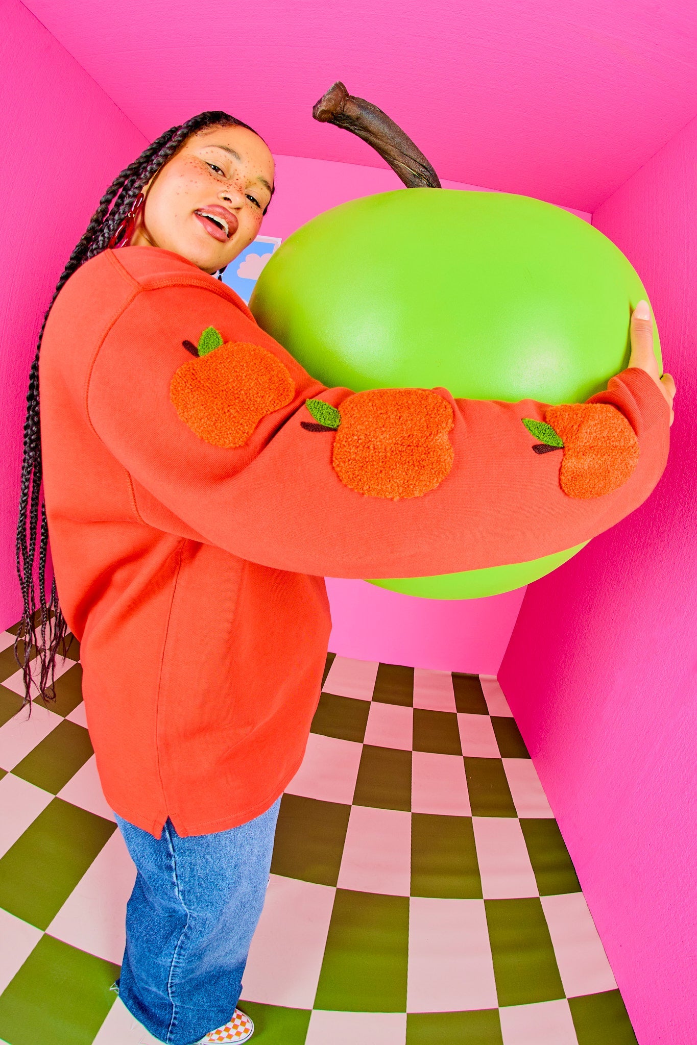 Kai - Midweight Cotton Crew Neck Sweatshirt in Red Apples Motif
