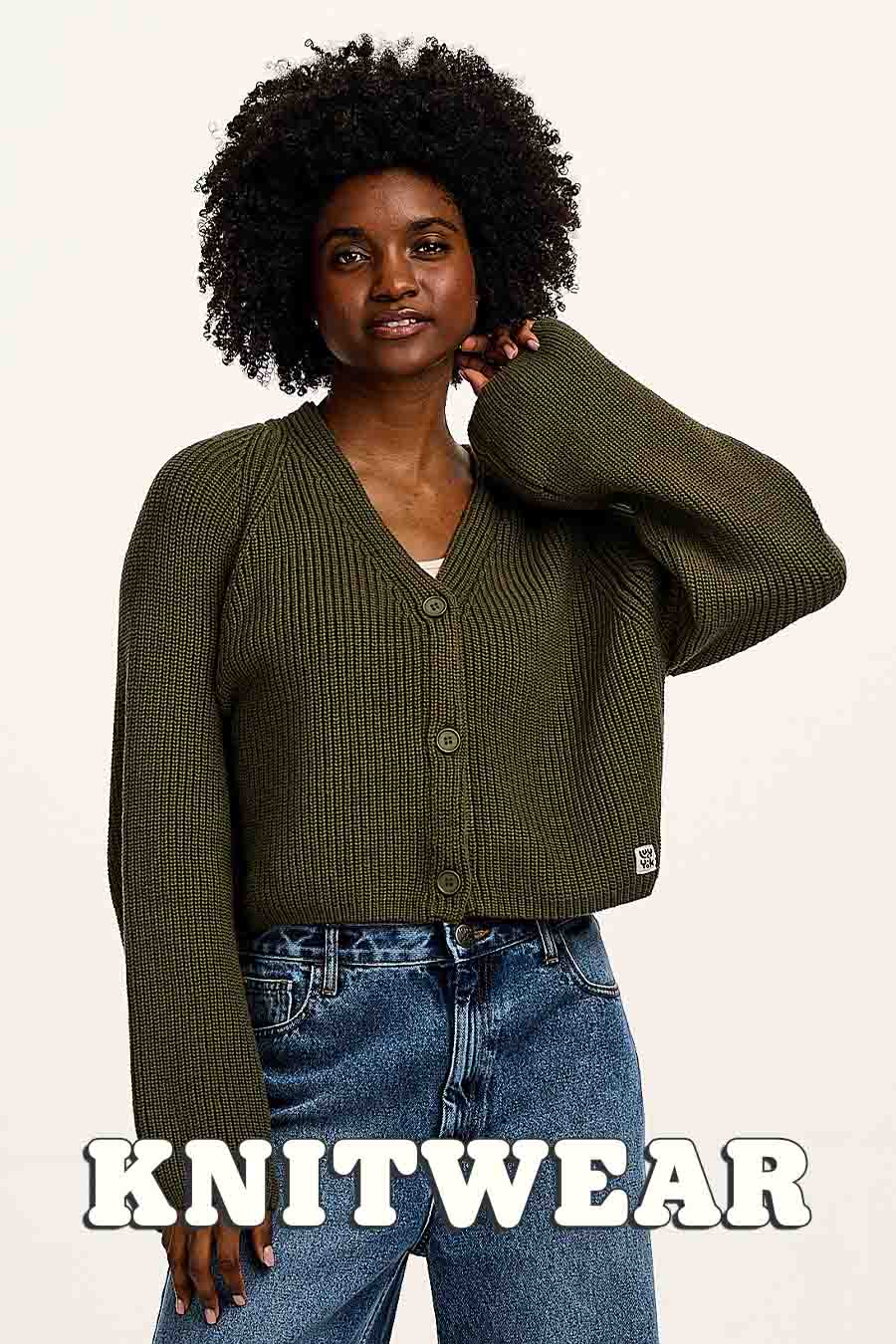 Robyn - V-Neck Cotton Cardigan in Ivy Green