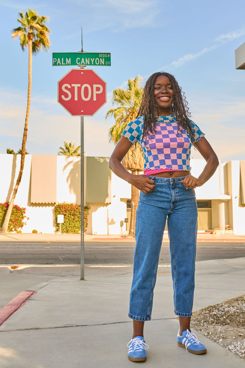 Drew - Cropped Straight Leg Denim Jeans in Mid Wash Blue