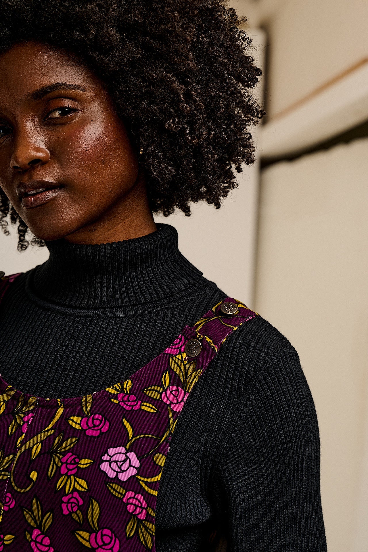 Layla - Mini Cotton Dress in Purple Grunge Floral Print