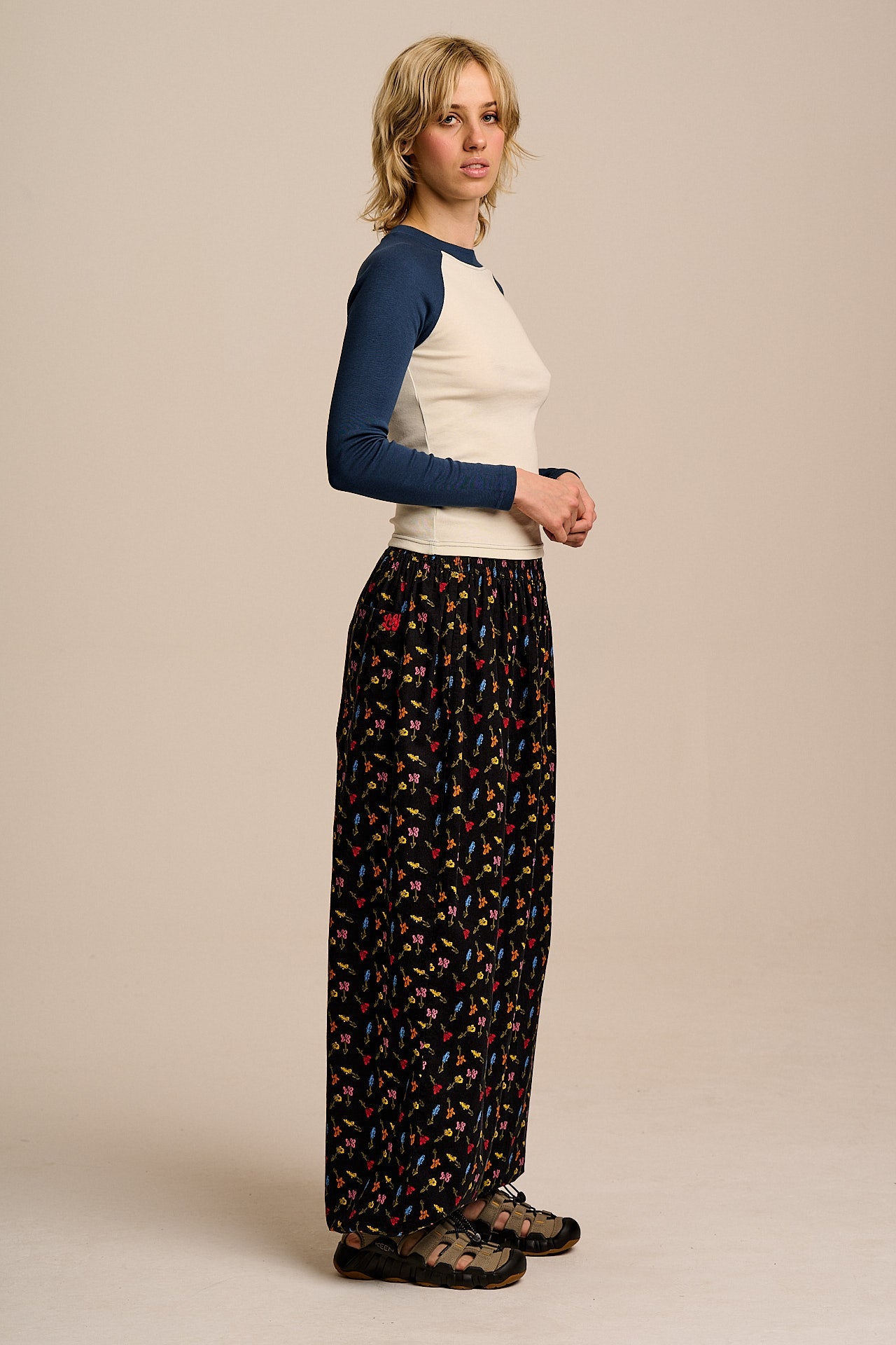 Renata - Cuffed Cotton Balloon Leg Trouser in Mini Tulips on Black