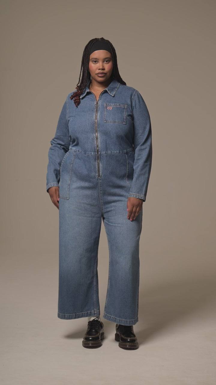 Tavira - Denim Long Sleeve Jumpsuit in Vintage Wash